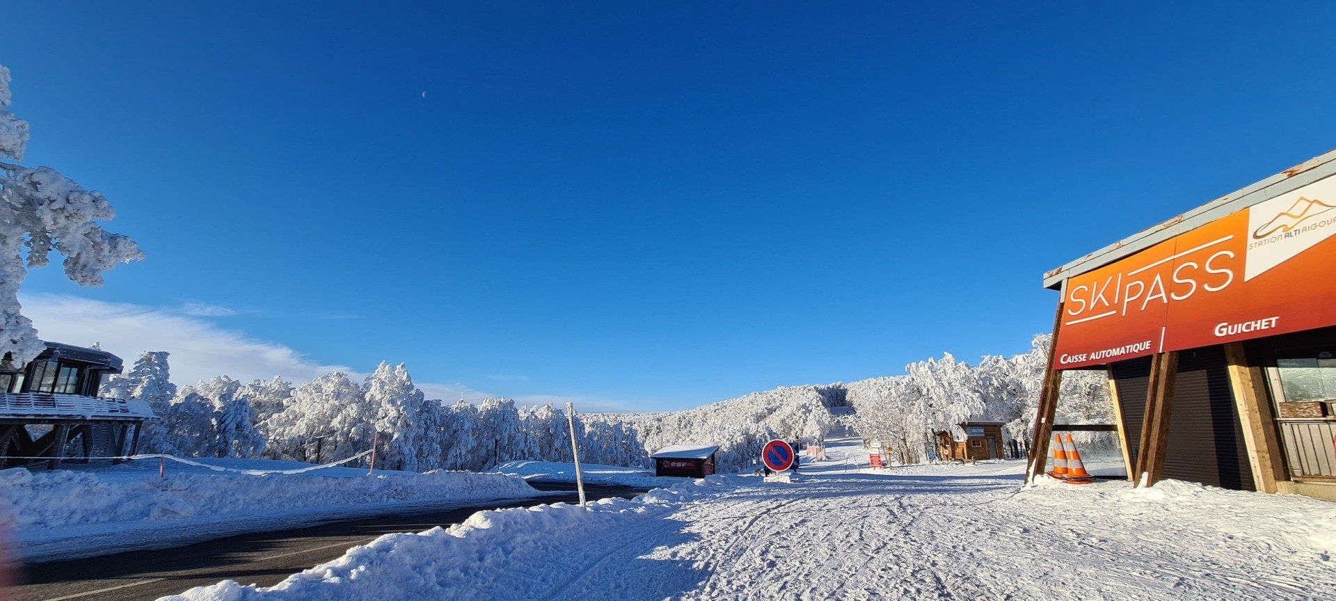 Le cœur de la station où se situent les parkings, la billetterie et le snack est à 1410 mètres
